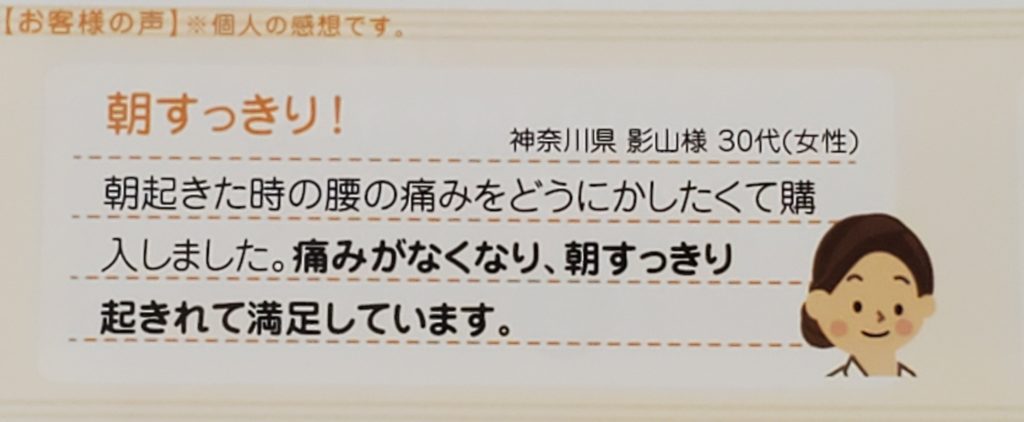 ✅寝返りする時にいつも腰が気になっていたのですが、あまり気にならなくなりました