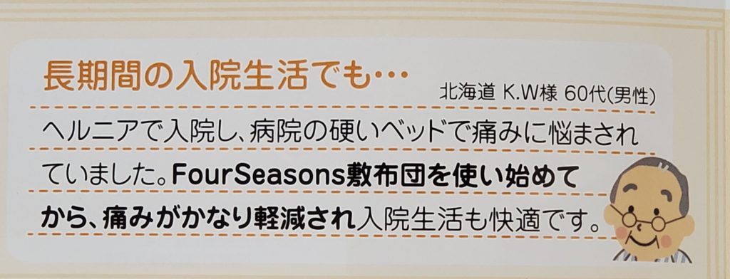 他社製の同じ厚さの敷布団と料金を比較するとFOUR SEASONSは・・・