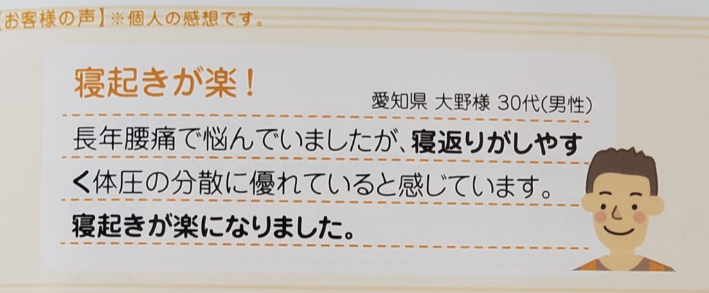 しかし実際に家で何日間か寝てみないと本当の使用感はわからないと思います。