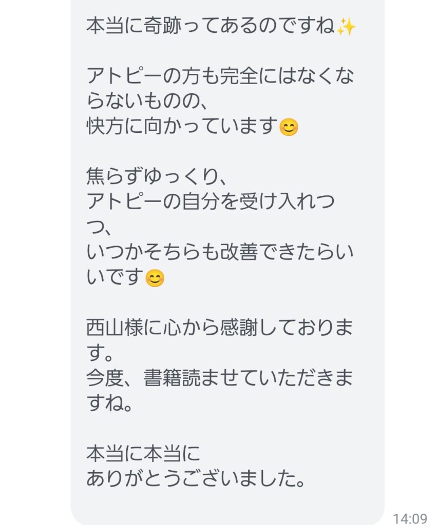 心の辛さ、体の辛さ、ともになくなり、心身の調和がとれるようになっていきます。健康であることに感謝し、またいろいろなことができるようになったり、チャレンジできるようになって、きっと幸福感を感じるようになっていくでしょう。