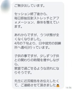 ですから、何回かはセラピーを受けていただき、かつセルフケアも行っていただければ、かなり早い段階で大幅回復できると考えています。そのために、オンラインで受診の方には、セッション時の録画した動画をお渡しするサービスもございます。それを見ながらセルフケアをしていただけると効果的です。