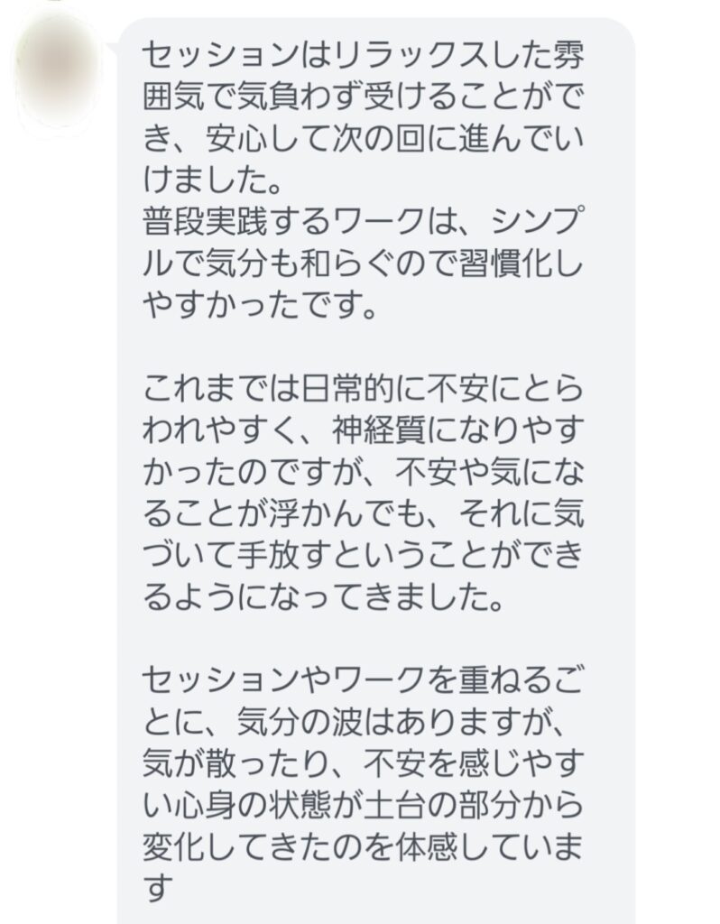 これにより、今抱えているストレスからトラウマ、潜在意識の書き換えまで全て行い、マインドを徐々に変えていきます。