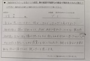 MBRセラピーは全ての方向からアプローチし、体全体のバランスをとることで治癒力を引き出し全身を改善させていくことを狙いとしています。芯から体を癒せるセラピーと考えています。